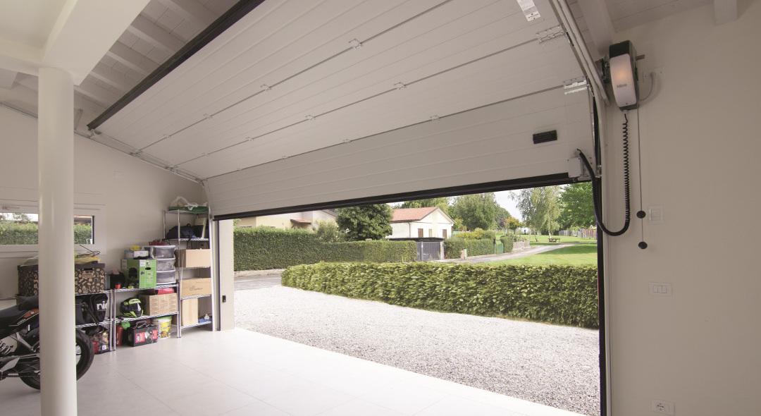 Uși de garaj automate, cu sisteme de actionare manuală, rulori exterioare pentru protecția ferestrelor.